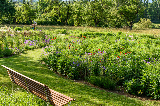 Unter dem Motto „Bienenfreundlicher Garten mit Stauden“ entstand ein ganzjährig attraktiver Stauden- und Gräsergarten. Die 2000 qm große Fläche ist mit Rasenwegen in mehr als 20 unterschiedlich gestaltete Beete unterteilt.